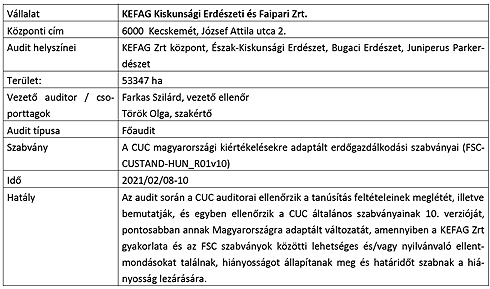 KEFAG Zrt. FSC erdőgazdálkodási főauditja