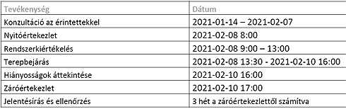 A kiértékelési folyamat tervezett menetrendje az alábbi: