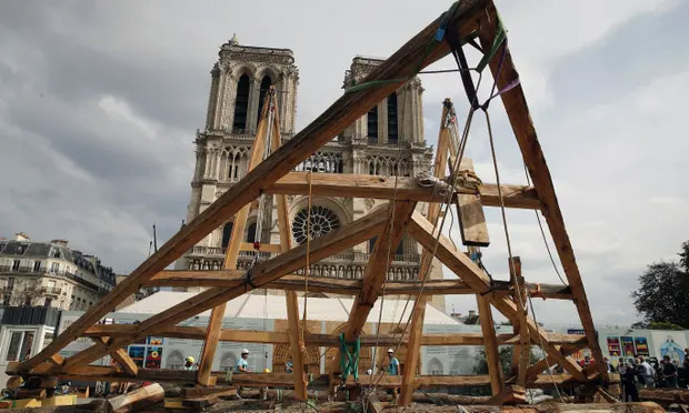 A katedrális helyreállításának munkálatai várhatóan csak 2022 elején kezdődnek. Az ács szakemberek szerint a Notre Dame újjáépítése 2.000 köbméter fát igényel, amelyhez körülbelül 1.500 tölgy kivágása szükséges. A székesegyház teteje annyi fagerendát tartalmazott, hogy la foret (az erdő) nevet viselte. A tető alátámasztása 25 háromszög alakú, 10 méter magas és a tövénél 14 méter széles szerkezet volt, a hajó kőboltozatai fölé helyezve. 2019 óta a munka a szerkezet stabilizálására és a torony körüli - a tűz idején a felújítást szolgáló - állványok eltávolítására összpontosult, amelyek összeomlottak és összeolvadtak az alatta lévő kőszerkezettel. Forrás: theguardian.com Kiegészítés: