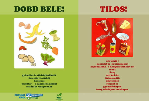 - a kihelyezett táblán megtalálható, hogy mely anyagokat lehet, és melyeket Tilos! a közösségi komposztálóba helyezni