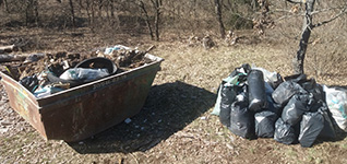 1 konténert (5 m3), 100 zsákot töltöttek meg kollégáink, melyek nagy része építési törmelék, kommunális hulladék, autógumi, műanyag palack, fém doboz és háztartási hulladékból volt. Veszprém - Kádártai vendéglőtől bevezető erdei út környezetéből, pedig mintegy 1m3, főleg üveghulladékot és háztartási hulladékot szállítottak el.