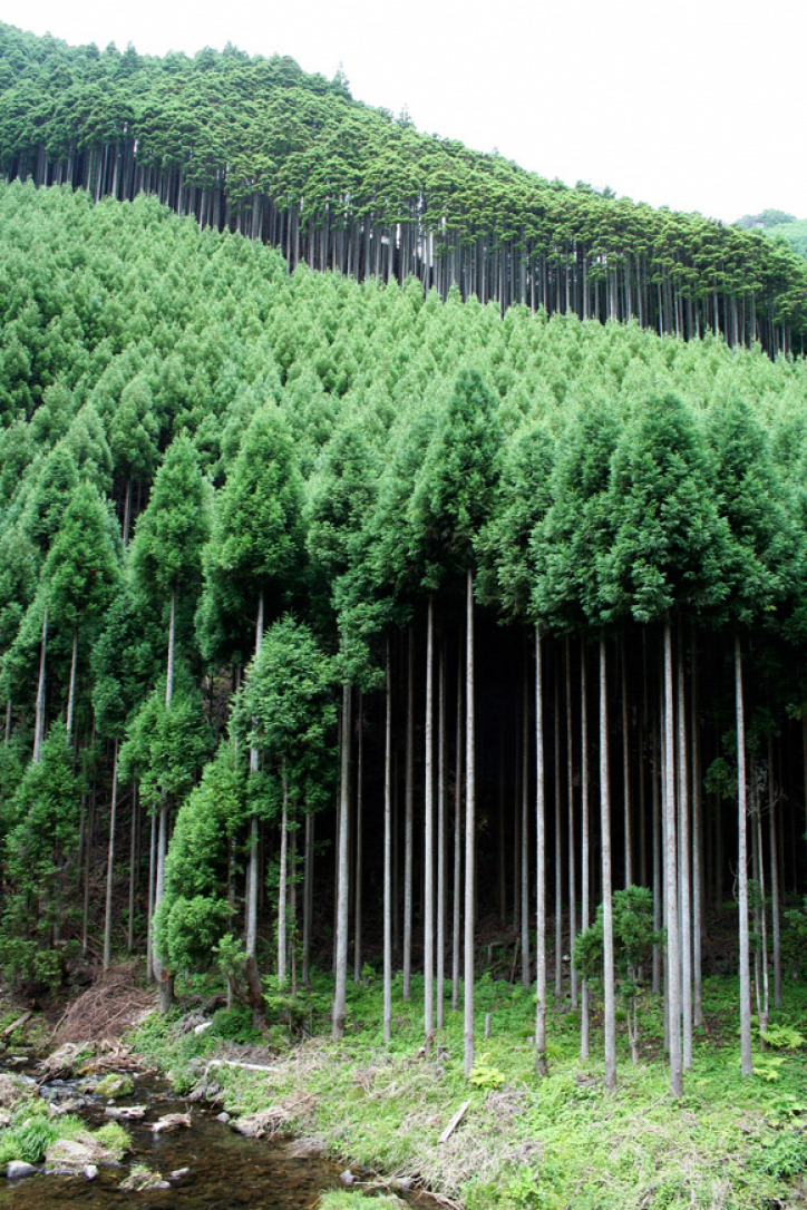 Ám a cédrus lassan nő, ahogy a japánok mondják, két generáció kell a favágásig, a nagyapa ülteti az unokának a fákat. A 14-15. században ezért kifejlesztettek egy különleges fatermesztési módszert, amelynek köszönhetően már 20 év után vágásérett faanyaghoz juthattak.