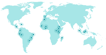 Az ECOSIA kereső nyitólap alján lévő térkép szerint ezeken a vidékeken telepítenek erdőt. A térképhez ezt a magyarázatot adják: "Ott ültetünk fát, ahol erre a legnagyobb szükség van. Fáink előnyét élvezik az emberek, a környezet és a helyi gazdaság." A helyszíneket ennél részletesebben azonban nem sorolják fel.