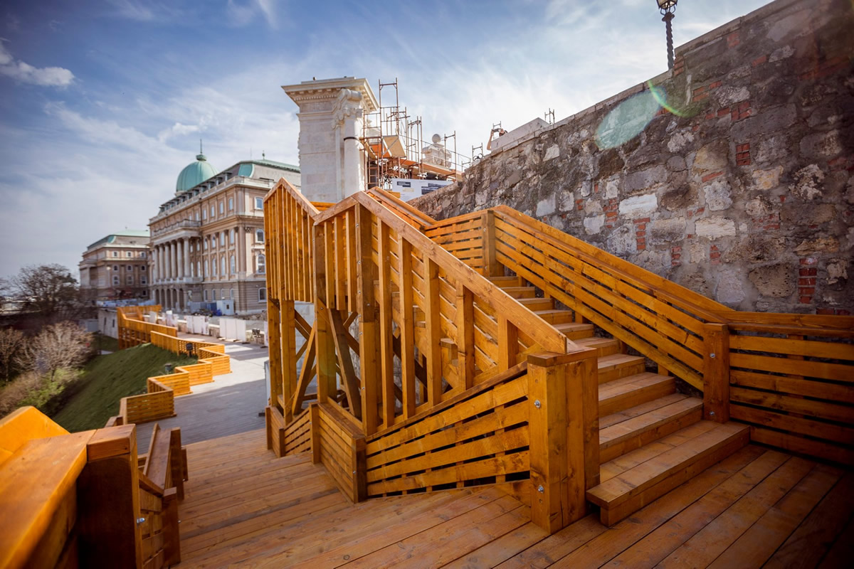 Az ideiglenes járdásra azért van rá szükség, mert a Habsburg kapun most nem lehet átsétálni, hiszen dolgoznak a kapu, a díszkerítés és a hozzájuk tartozó lépcső felújításán.