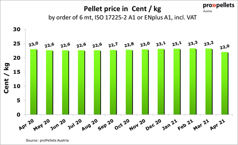 A fa pellet árait 2006 óta havi rendszerességgel állítja össze a proPellets Austria. A forgalmazott pellet mennyiségek több mint 70%-a szerepel ebben az árfelmérésben a bevont 50 pellet kereskedőnél, ezáltal lesz megbízható mutató a piaci árak alakulásának bemutatására.