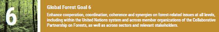 6.) Fokozni kell az együttműködést, a koordinációt, a koherenciát és a szinergiákat az erdőkkel kapcsolatos kérdésekben minden szinten, beleértve az ENSZ rendszerét és az Erdőügyi Együttműködési Partnerség (Collaborative Partnership on Forests) tagszervezeteit, valamint az ágazatokat és az érdekelt feleket. (5 altéma)