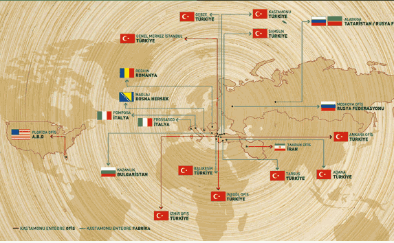 A cég bemutatkozó szövege honlapján: Kastamonu Entegre, nyers és melamin bevonatú forgácslapot, tükörfényes lapot, MDF-t, laminált padlót, munkalapot, ajtólapot és más feldolgozott termékeket gyárt a bútor-, a dekorációs és az építőipari ágazatok számára. Összevont forgalma 1,3 milliárd USD, globális tényező, amely Törökországban az első a saját szektorában, Európában a 4. és a világ 7. helyén áll. Ma 6.300 alkalmazottjával, termelési erejével, tudásával és tapasztalatával, Közép-Amerikától Indiáig több mint 100 országba irányuló exportjával az ágazatában az első és a 46. az Isztambuli Iparkamara által jegyzett első 500 ipari vállalkozás között.