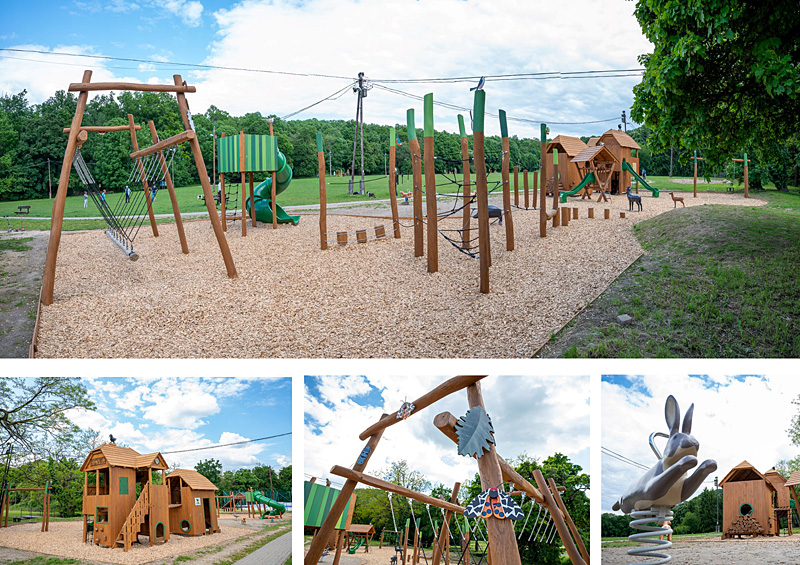 A mára már elbontott, egykori mutatványosbódékkal szegélyezett terület megújításának középpontjában a mozgás és a természet áll. A 2019-ben megépült kézilabdapálya a megújulás első lépése volt, amelyet továbbiak követtek. A tematikus játszótér nem csak a felhőtlen kikapcsolódást, hanem a játszva tanulást is szolgálja: elemei környezetükbe harmonikusan illeszkedő, szobrászművészek által készített művészi alkotások, formájukkal és anyagukkal erdeink őshonos állat- és növényvilágát idézve. A gyalogút mentén megépített szabadtéri fitneszpark éppen egy tucat sporteszközzel várja az erőnlétüket fejleszteni, vagy éppen kihívásokra vágyókat, akiknek a has- és hátpad mellett többek között fekvenyomó pad, kombinált bordásfal, szörföző, párhuzamos korlát, evezőgép és dupla fekvőtámasz-állvány is rendelkezésükre áll. A szigetes elrendezés pedig nem csak a biztonságos környezetet, hanem azt is biztosítja, hogy mindenki megőrizhesse privát szféráját, nyugodtan élvezhesse a mozgást és az erdő semmivel sem összehasonlítható hangulatát.