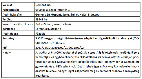 Gemenc Zrt. FSC erdőgazdálkodási auditja