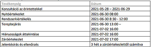 A kiértékelési folyamat tervezett menetrendje az alábbi: