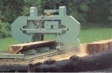 18. ábra Brenta CD rönkvágó szalagfűrész A felvágandó rönköt az aljzatra helyezzük, melynek a befogása mechanikusan vagy pneumatikusan történhet. A befogóelemek száma a felvágandó rönkhossztól függ. A gép egyszerűműködési és karbantartási igényű, erős kivitelűés nagyteljesítményű. Felszerelhető villanymotorral vagy diesel motorral a következő műveletek biztosítására: fűrészszalag meghajtás, fűrészegység előtolás és önműködő emelés. A fűrészgép teljesítménye a felvágásra kerülő fafajtól, és rönkméretektől függ: