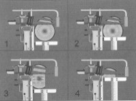 44. ábra LOGOSOL gyártmányú mobil rönkvágó láncfűrész vágási lehetőségei A vastagsági méret beálltásának módját a 45. ábra jobb oldali képe mutatja. A fűrészelt felület minősége megegyezik a keretfűrészgépen vágott fűrészáru minőségével, főleg építőipar termékek előállítására való.