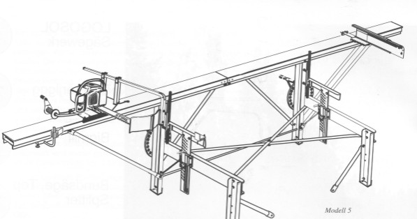 Logosol mobil rönkvágó láncfűrész Ez a láncfűrész a Logosol gyártmányok egy újabb továbbfejlesztett változata, amely kitűnik könnyűtömegével (49 kg), szállításával, és gyors felállítási idejével. A rönköt tartó és a láncfűrészt megvezető szerkezet (45. ábra) összeszerelése egyszerű, a befoglaló mérete 2,5 m szélesség mellett 7,5 m hosszal számolhatunk. A nagyteljesítményűSTHIL motorfűrész (STHIL 064) 5-6 m/min előtolással tudja felfűrészelni a rönköt.