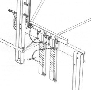 45. ábra A rönköt tartó és a láncfűrészt megvezető szerkezet a méretállító kinagyításával Másik megoldást (46. ábra) nagy méretűrönkök vágására ajánlja a cég, mert itt nem kell a nehéz rönköt felemelni, hanem a földön, vagy akár a kivágás helyszínén is elvégezhető vele a vágás. Nemcsak vízszintes, hanem függőleges síkban is lehet fűrészelni vele, mint a 46. ábra is mutatja.